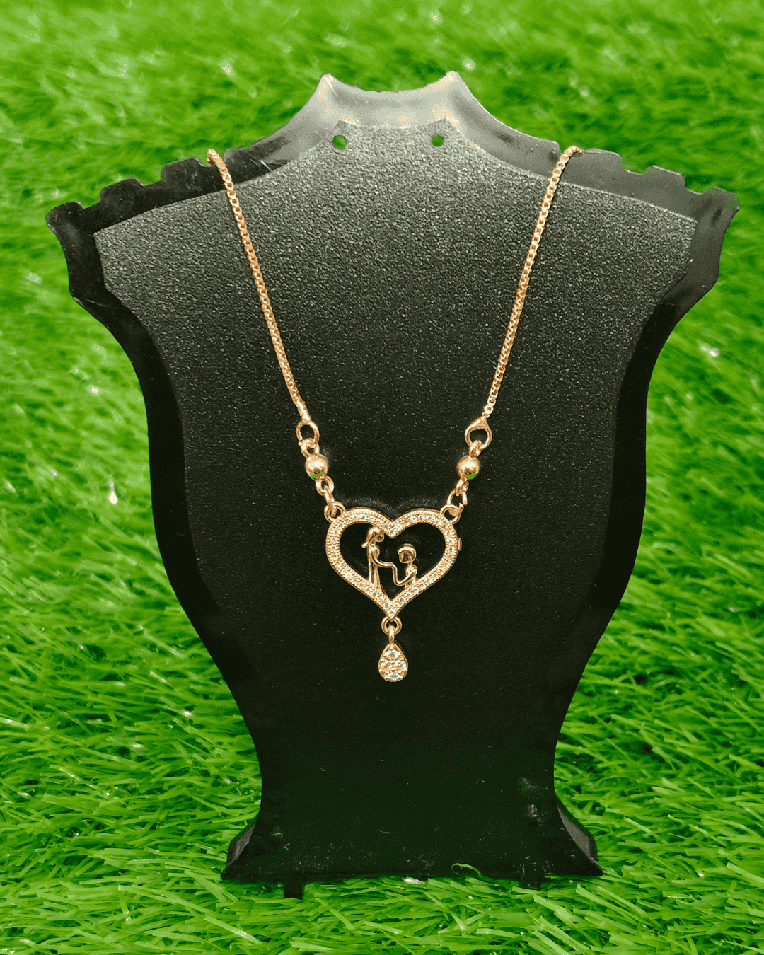 - Design & Sentiment: The open heart is meticulously detailed with sparkling white crystals, framing the central silhouette of a mother tenderly holding her child—a universal symbol of love, care, and family connection.