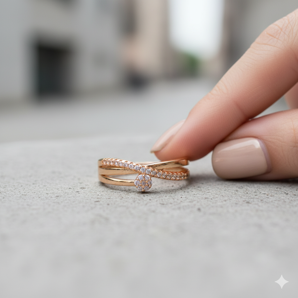 - Modern Crossover Design: The band is defined by a chic double-band crossover structure. The top band is clean and polished, while the lower band is embellished with a row of meticulously set pavé cubic zirconia stones.